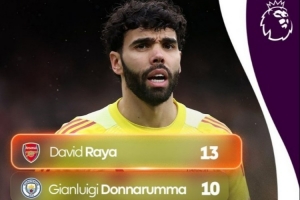 3、桑切斯(切尔西)、迪恩·亨德森(水晶宫)、皮克福德(埃弗顿)9场