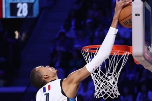 本次全明星赛,文班亚马出战2场,分别得到14分6篮板3盖帽、19分2篮板。