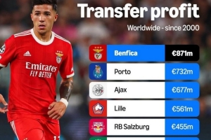24直播网02月17日讯 根据亚马逊统计,本菲卡是21世纪转会收入最高的俱乐部,累计达8.71亿欧元。波尔图(7.32亿)和阿贾克斯(6.77亿)分列二、三位。该榜单展现了多家欧洲及南美俱乐部通过球员出售获得巨额收益的商业模式。