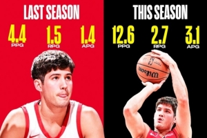 上赛季谢泼德场均4.4分1.5篮板1.4助攻0.7抢断,三项命中率35.1/33.8/81.3%。