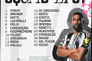 24直播网02月25日讯 尤文图斯公布欧冠1/8决赛附加赛次战加拉塔萨雷大名单。门将佩林领衔,后防布雷默、加蒂在列,中场有洛卡特利、库普梅纳斯,锋线则由孔塞桑、伊尔迪兹、奥蓬达等攻击手组成,球队将主场迎战。