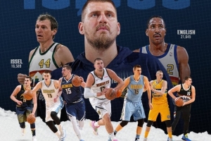 今天掘金官方晒出数据显示,约基奇掘金生涯总得分来到了16590分,超越了伊塞尔(16589),升至队史第二,仅次于英格利什(21645)。