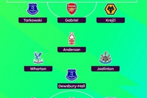 后卫:塔科夫斯基(埃弗顿)、加布里埃尔(阿森纳)、克雷伊奇(狼队)