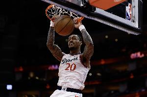 赛季至今,科林斯出战54场比赛,场均得到13.8分5.2篮板1助攻0.8抢断0.8盖帽。