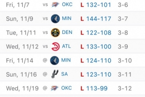 这波8连败,国王场均丢128.5分,只有昨天对阵雷霆失分不到120。
