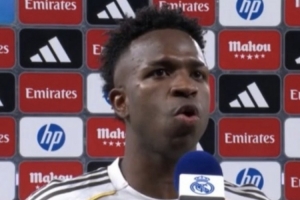 24直播网03月23日讯 3月23日西甲第29轮,维尼修斯梅开二度助皇马3-2力克马竞。赛后他盛赞这是美好的一天,感谢弗洛伦蒂诺的鼓励及全队的团结努力,并表示球队正不断进步。