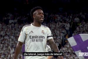 24直播网03月25日讯 马德里德比中,皇马的维尼修斯独中两元,其左路攻势主导比赛,迫使马竞右路球员朱利亚诺·西蒙尼疲于防守。一次拼抢后,维尼修斯笑着对小西蒙尼说:“边卫踢得不错啊。既然是边卫,就专心好好当边卫。”