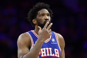 恩比德缺席13场后今日迎来复出,首节出战9分钟,投篮9中6,三分3中3,砍下15分1篮板2助攻。