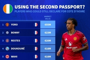 体育资讯11月22日讯 德国转会市场更新社媒冬天,盘点了仍可以选择为非洲国家队效力的球员。