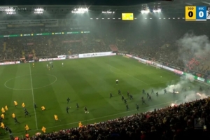 图片报:因双方球迷互相投掷烟火,德累斯顿迪纳摩与赫塔的比赛被迫中断了20分钟。