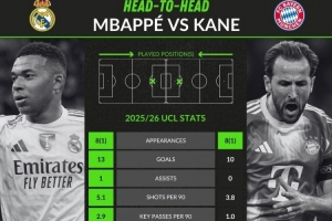体育资讯4月7日讯 皇马将在本轮欧冠八强战首回合迎战拜仁,whoscored也对比了两队当家前锋的本赛季欧冠关键数据: