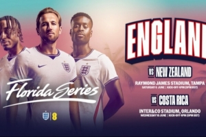 英格兰6月友谊赛场地:在坦帕对阵新西兰,在奥兰多vs哥斯达黎加