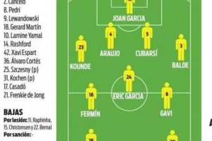 24直播网04月11日讯 巴萨将轮换阵容备战欧冠,客场迎战西班牙人。预计霍安·加 Garcia首发,防线由库巴西、阿劳霍等组成。中场加维、费尔明领衔,锋线由奥尔莫、费兰·托雷斯和巴德吉组成三叉戟。