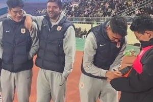 泽卡、马德鲁加、彭啸来到了比赛现场,与当地球迷互动。