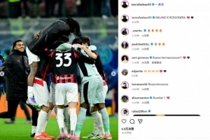 他也在赛后通过社媒晒出自己和队友们相拥庆祝的照片,并配文:“米兰城是红黑色的!”