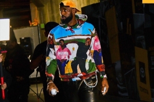 赛前,湖人官推晒球员入场照,詹姆斯花哨着装十分吸引眼球,东契奇墨镜酷帅。