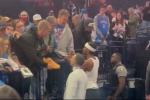 亚历山大在赛前为主场球迷签名,来者不拒。而球迷也排起了长队。