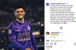 24直播网12月01日讯 2025赛季中超落幕,天津津门虎获第6。外援萨尔瓦多发文总结,称赛季收获良多,感谢俱乐部与球迷,并自豪于球队团结拼搏、进步至终的团队氛围。
