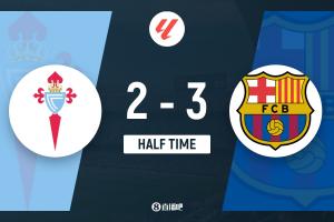 体育资讯11月10日讯 西甲第12轮,塞尔塔坐镇主场巴拉伊多斯市政球场迎战巴塞罗那。上半场,费尔明造点,莱万点射+双响,拉什福德失单刀+中框+助攻,卡雷拉、伊格莱西亚斯建功,亚马尔补时进球。半场战罢,巴萨3-2塞尔塔。