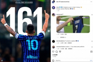 数据统计显示,他也也追平马佐拉并列国米队史射手榜第4位。