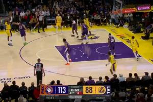 GIF-詹姆斯弧顶三分 得分上双!