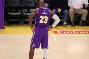 本场比赛湖人末节6分51秒还落后25分,詹姆斯弧顶三分之后得分上双,随后他在末节5分44秒下场休息,湖人换上布朗尼等第三阵容宣告放弃。