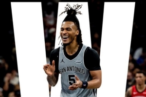 比赛结束后,马刺官推晒出了本场比赛的赢球海报,卡斯尔登上封面。