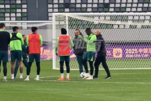 体育资讯12月5日讯 国安今天进行足协杯决赛踩场训练,《天天体育》发布一段球队训练前的视频。