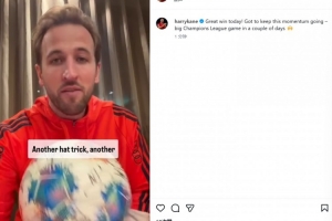 凯恩通过视频表示:“大家好,又一个帽子戏法,又一场胜利。我为小伙子们感到非常骄傲。尤其是经历了周中的苦战,今天又是客场挑战一支强队,比赛并不轻松。这要归功于所有人,也展现了我们的阵容深度以及我们的意志力。希望我们能在接下来主场的欧冠取胜,从而更进一步锁定前八直接晋级。感谢大家支持,希望能在赛季结束时获得更多这样的全队签名皮球(帽子戏法纪念品)。”