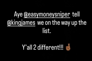 哈登则写道:“是的,杜兰特,告诉詹姆斯,我们两个人的排名都在上升。你们两人都是与众不同的。”