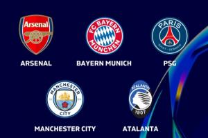 5队分别是:阿森纳、拜仁、巴黎、曼城、亚特兰大。