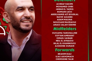 体育资讯12月11日讯 非洲杯即将来临,夺冠热门摩洛哥公布了参赛大名单,阿什拉夫、布拉希米·迪亚斯、马兹拉维领衔,布努、阿姆拉巴特入选。