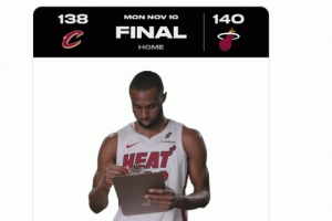 体育资讯11月11日讯 NBA常规赛,热火140-138加时险胜骑士。