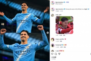 赖因德斯也在赛后通过社媒晒出自己的庆祝照,并配文:“以高光表现为今年的伊蒂哈德收官 🩵!”