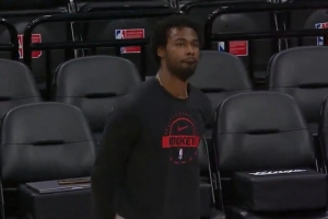 GIF——伊森赛前投篮热身
