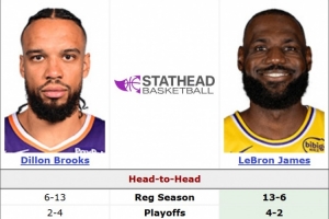 据统计,这是詹姆斯和狄龙生涯第20次交手,詹姆斯13胜7负,狄龙7胜13负;季后赛詹姆斯4胜2负。