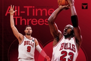 在上一场公牛126-123险胜老鹰的比赛中,武切维奇命中了1记三分,正式超越了乔丹。