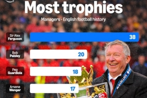 体育资讯12月31日讯 今天是曼联教父弗格森爵士84岁生日,执教曼联27载弗格森爵士带队夺得了38个冠军,是英超历史最伟大的主帅。