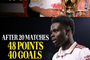本赛季英超进行20轮,阿森纳已打进40球拿到48分,进球数和积分均超过03/04不败夺冠赛季同期数据(进36球拿46分)。