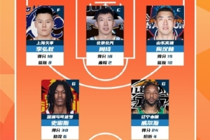 常规赛第11轮最佳阵容出炉,李弘权、周琦、陶汉林、史密斯以及威尔斯成功入选。