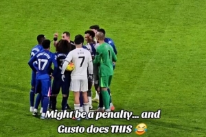 由于犯规地点在禁区附近,切尔西边卫古斯托在两队球员与裁判争执时偷偷破坏点球点,以防被判罚点球,最终裁判认定犯规在禁区外,判罚了任意球。