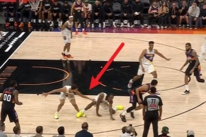 GIF-内史密斯踩到厄尔脚踝受伤