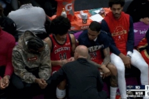 GIF-皮维拼抢篮板落点球时手受伤