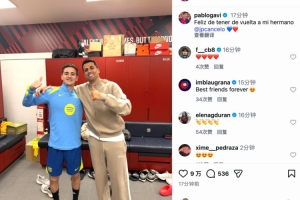 加维社媒写道:很高兴我的兄弟回归 💙❤️
