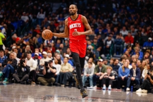 香波特表示:“杜兰特现在是历史得分榜第7位了,他超越了张伯伦,那是很多的分,我看到这些名字,我和杜兰特竞争过,那让我很满足。他是一个7尺高的后卫,他肯定是一个得分后卫,他不是一个控卫。”