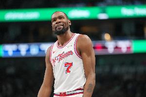 杜兰特出战36分钟,23投7中,三分5投0中,罚球5罚5中,得到19分7篮板3助攻3抢断1盖帽,出现2次失误,正负值-20。