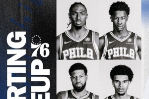 76人首发:马克西、埃奇库姆、乔治、巴洛、恩比德。