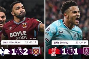 西汉姆(第18)2-1绝杀热刺,取得3分