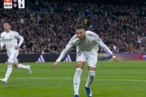 体育资讯01月18日讯 西甲第20轮,皇马主场2-0击败莱万特。姆巴佩在点射首开记录后,当面嘲讽对方门将马修·瑞安的扑救动作。