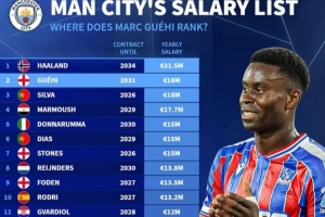 24直播网01月20日讯 曼城官宣签下格伊后,《转会市场》公布了球队薪资榜。哈兰德以3150万欧元年薪高居榜首,新援格伊以1800万欧元年薪位列第二,与B席并列。